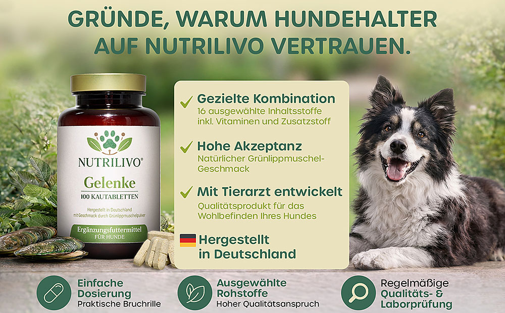 Nutrilivo steht für hochwertige Ergänzungsfuttermittel, die das Wohlbefinden von Hunden unterstützen. Unsere Produkte basieren auf durchdachten Rezepturen, sorgfältig ausgewählten Inhaltsstoffen und hohen Qualitätsstandards.