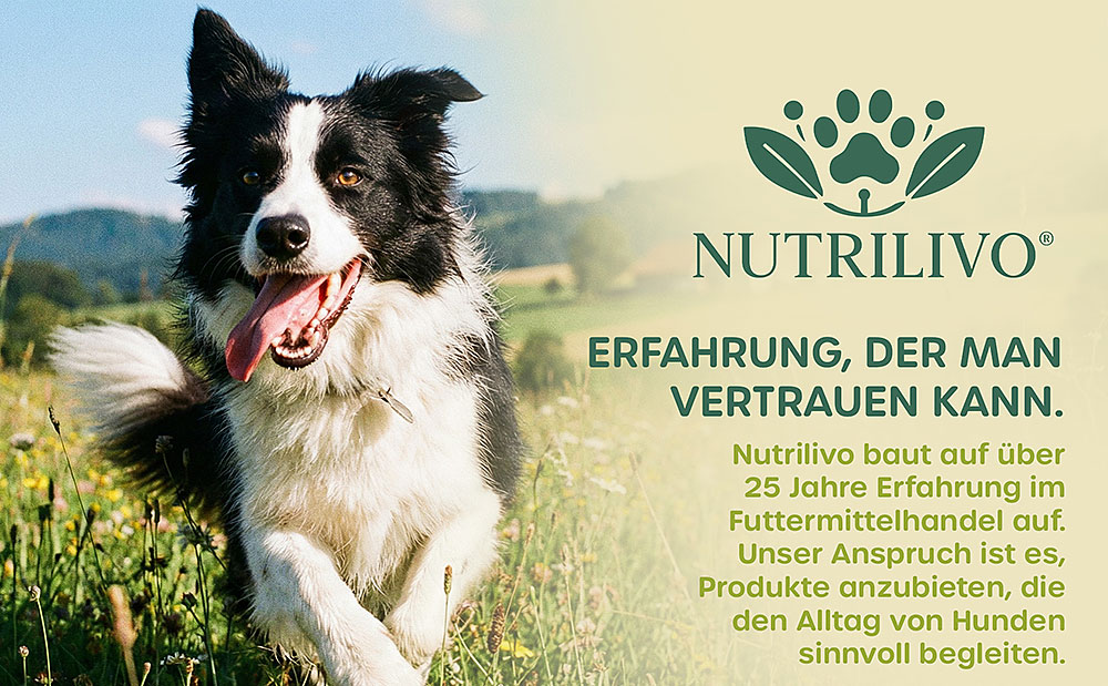 Der Name Nutrilivo vereint die Idee von Ernährung und Lebensqualität – für Produkte, die das Wohlbefinden deines Hundes unterstützen.
